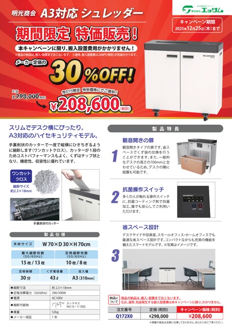 \A3対応シュレッダーが期間限定で特価販売!/